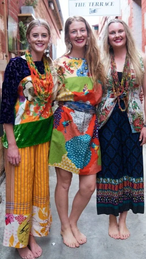 We’ll collaborate on colours, prints and fabrics — you’re welcome to supply treasured textiles: a vintage teatowel, grandma’s tablecloth, a scarf from your travels, or a newly loved fabric. I’ll blend them with my textile mixology skills to craft a beautiful, wearable work of art that expresses your unique personality and colourful self.
