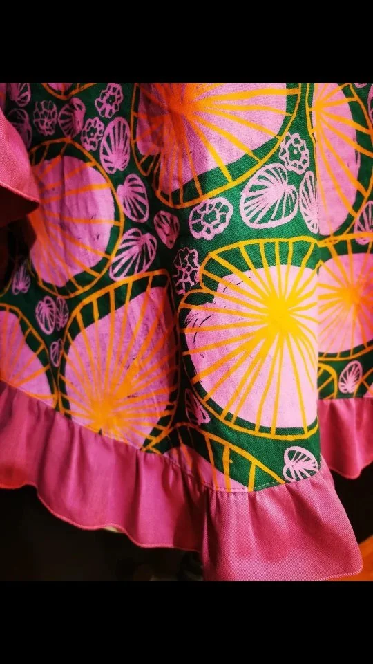 Iβm Sue Catt β artist, designer, and dressmaker β and every item is handcrafted by me with love, care, and an infectious passion for colour, textiles, art, and design. I like to think of myself as a fabric mixologist, blending vintage charm with bold contemporary flair.
